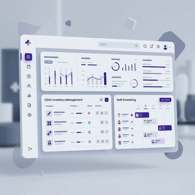 A tailored ERP with inventory management, shift scheduling, and internal workflow automation for healthcare practices.